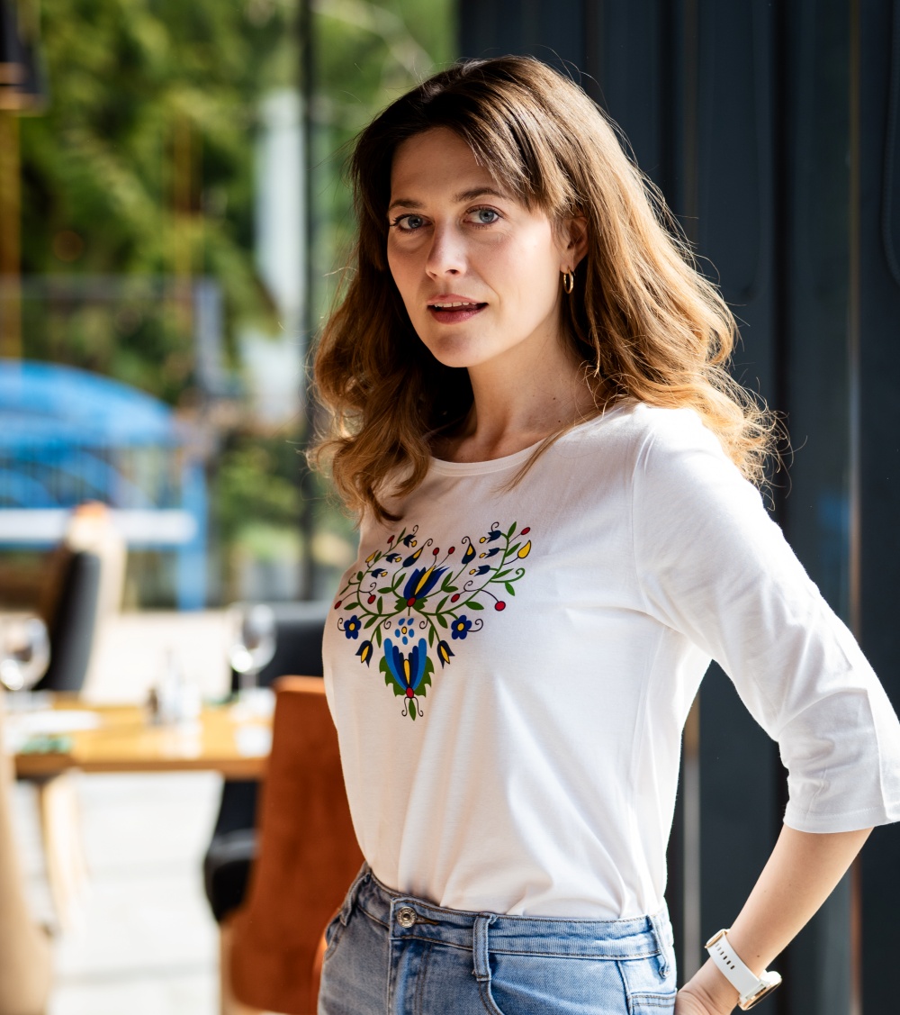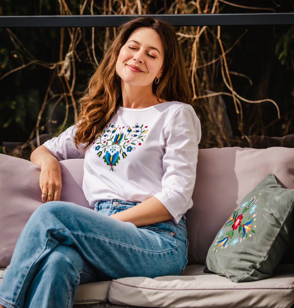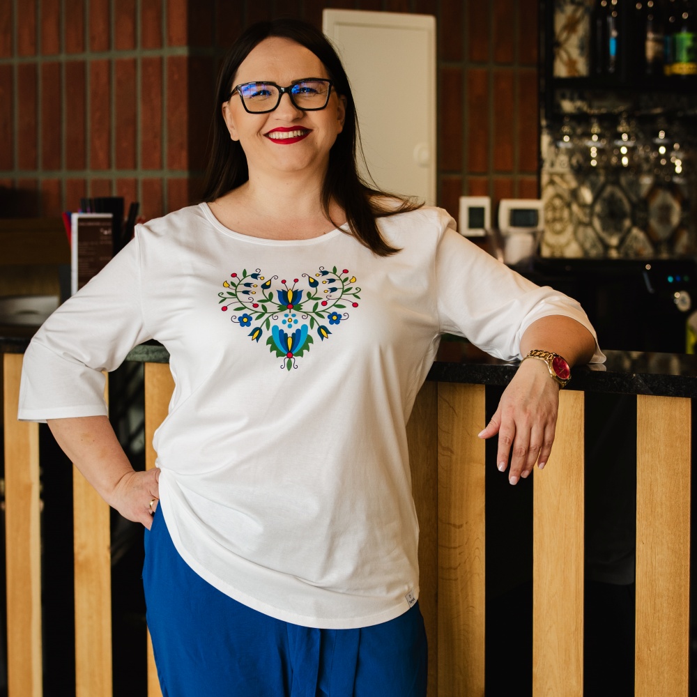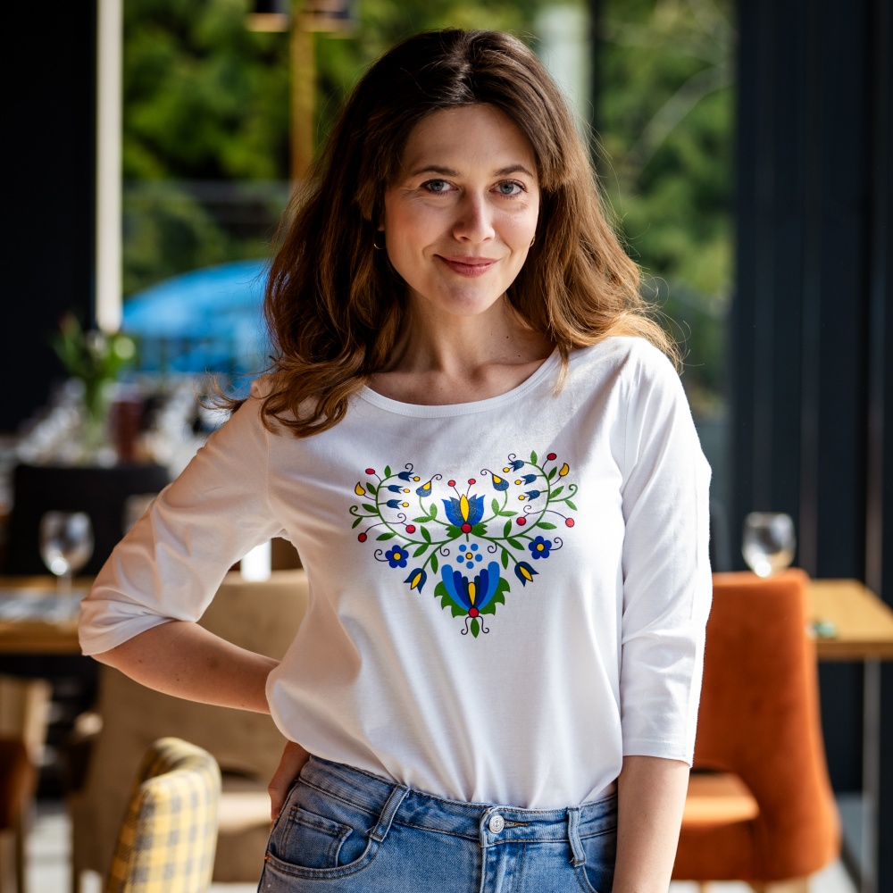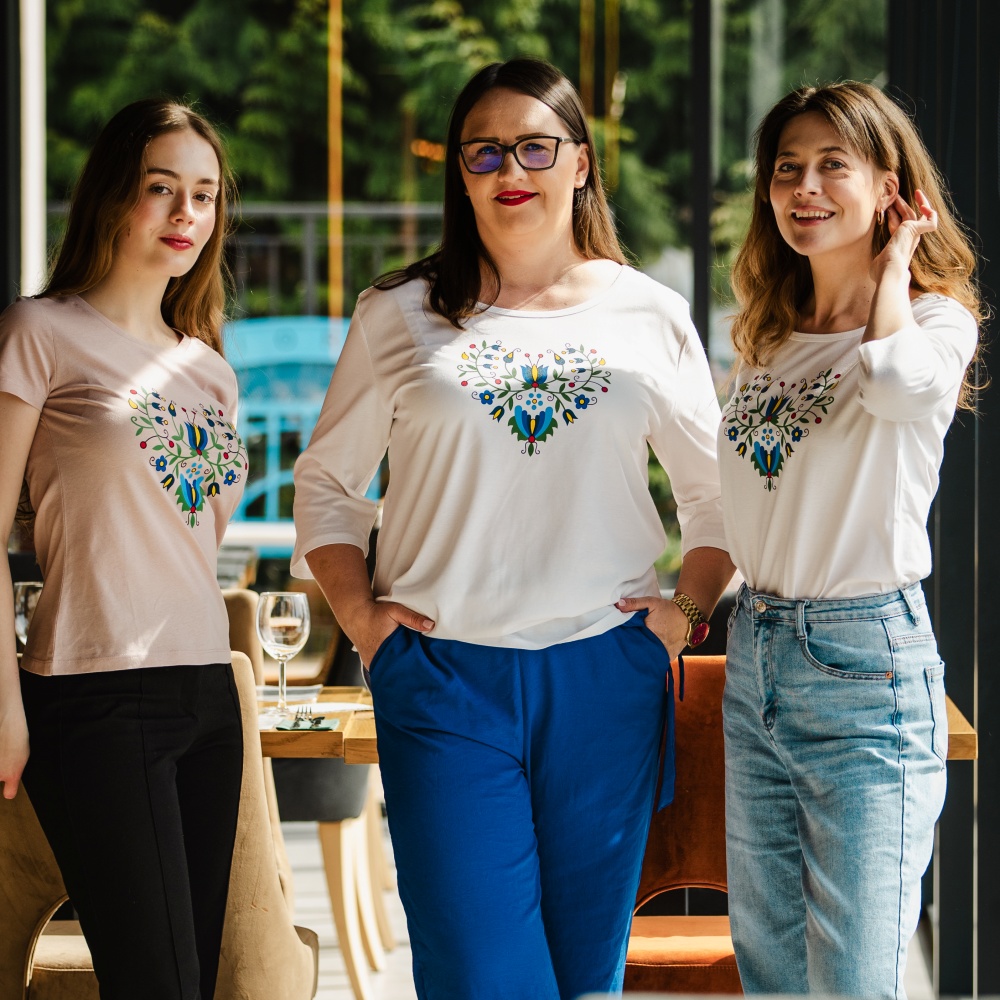 Koszulka doskonale odnajdzie się w szafie osób poszukujących oryginalnych ubrań z historią, które jednocześnie nie rezygnują z wygody. Ludowy wzór serca nawiązuje do polskiego dziedzictwa kulturowego – będzie ciekawym wyborem zarówno dla miłośniczek tradycji, jak i zwolenniczek nowoczesnych rozwiązań.