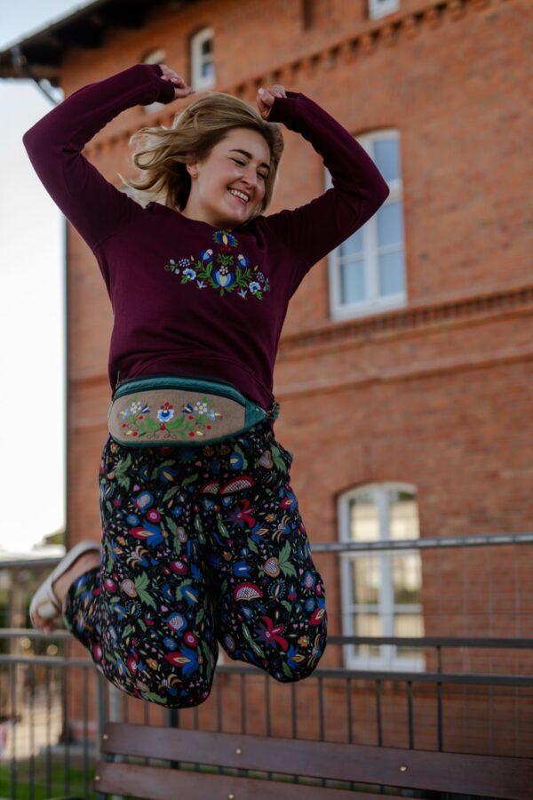 Bluzka dresowa z wyhaftowanymi maszynowo kaszubskimi wzorami.