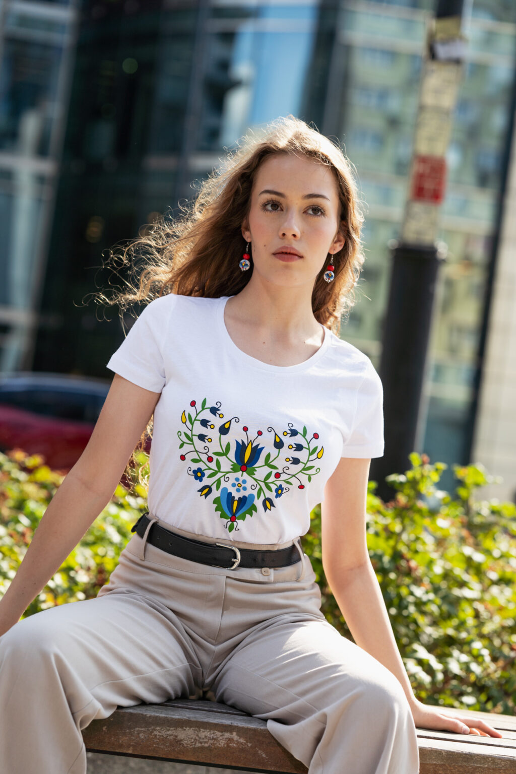 Graceful, feminine, cotton t-shirt. Adorned with Kashubian embroidery design. It was painted with special paints for fabric. The inks are very durable and do not get dirty clothes. T-shirt is made of good quality cotton. Size 36 It is washable at 40 degrees / manual /.