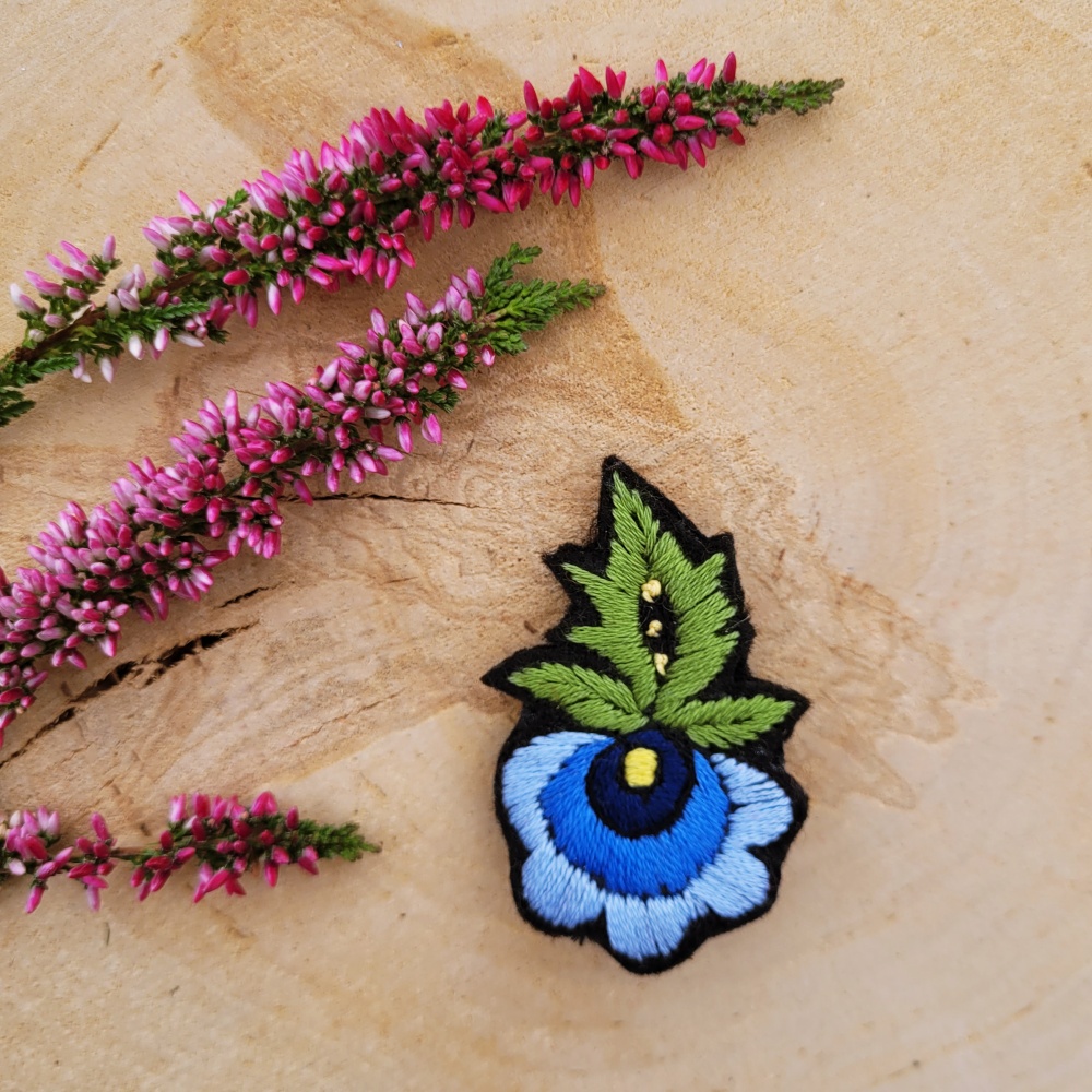 Wyjątkowa, ręcznie haftowana broszka wykonana na miękkim filcu. Jej motyw przedstawia różę inspirowaną tradycyjnym haftem kaszubskim, symbolizującą piękno i elegancję regionu Kaszub. Każdy egzemplarz jest unikalny, wykonany z dbałością o najmniejszy detal.