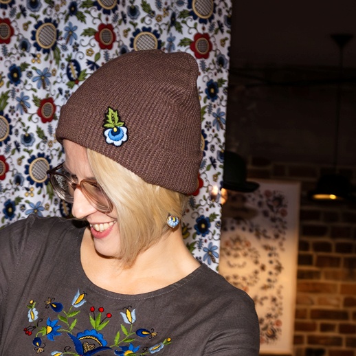 Broszka wyposażona jest w solidne zapięcie na agrafkę, dzięki czemu można ją łatwo przypiąć do ubrania, torby czy kapelusza. To idealny dodatek folkowy dla osób ceniących rękodzieło i kulturę regionalną.