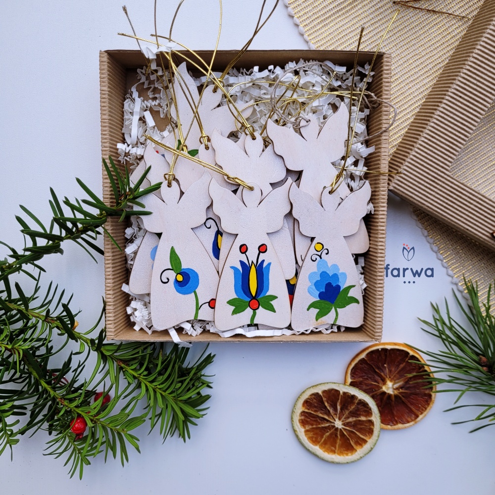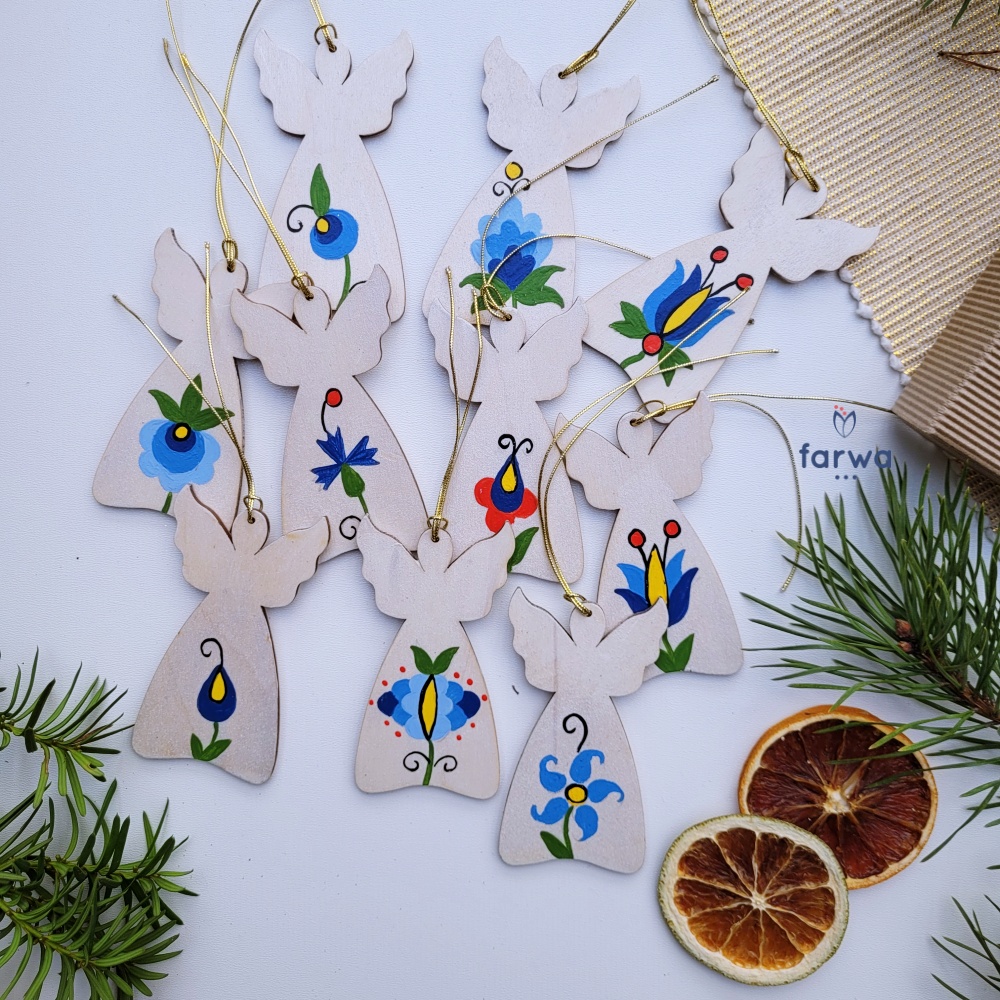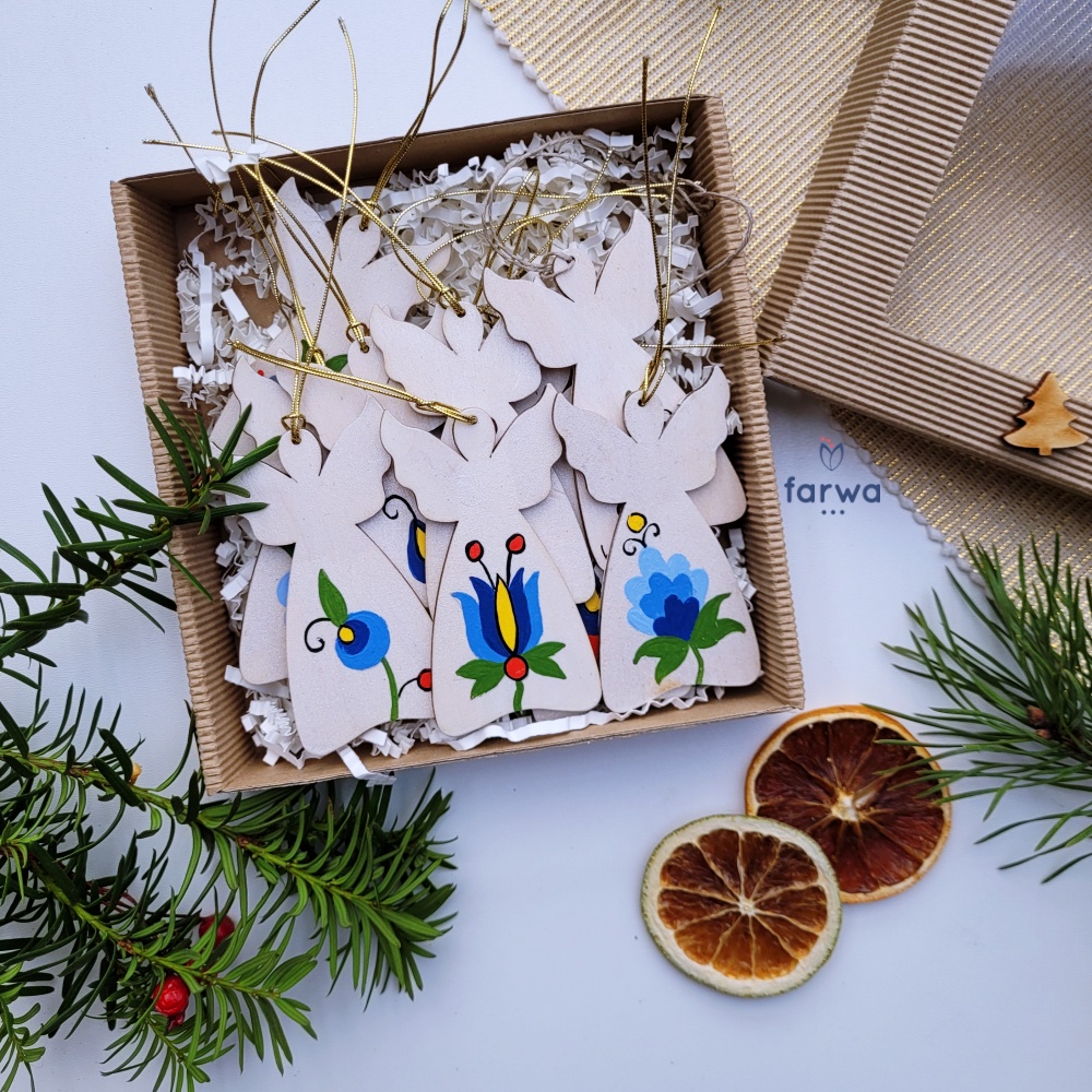 Choinkowe Aniołki Drewniane – Zawieszki na choinkę 10szt.