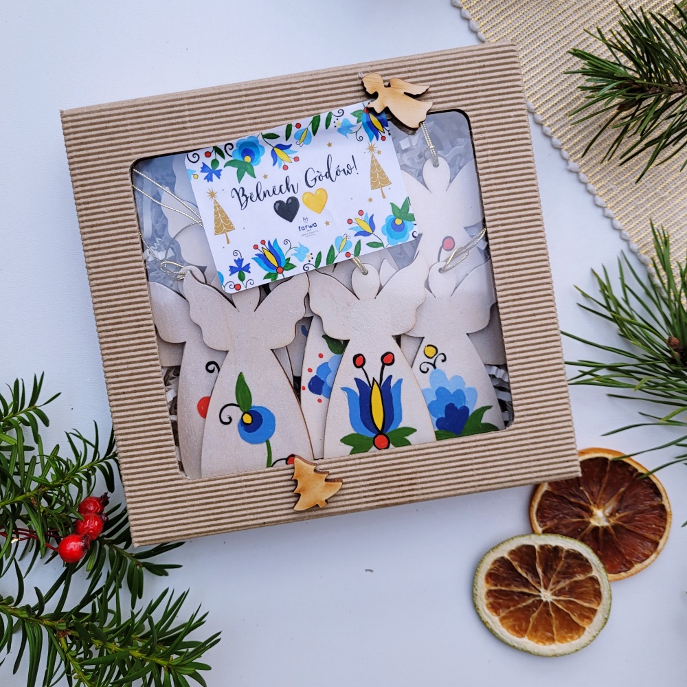 Aniołki zapakowane w pudełko, co sprawia, że może być pięknym prezentem.