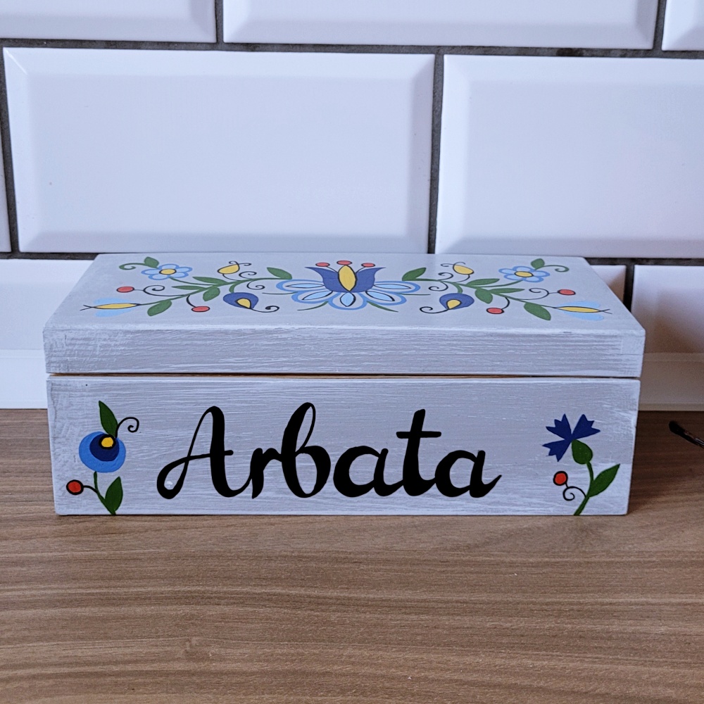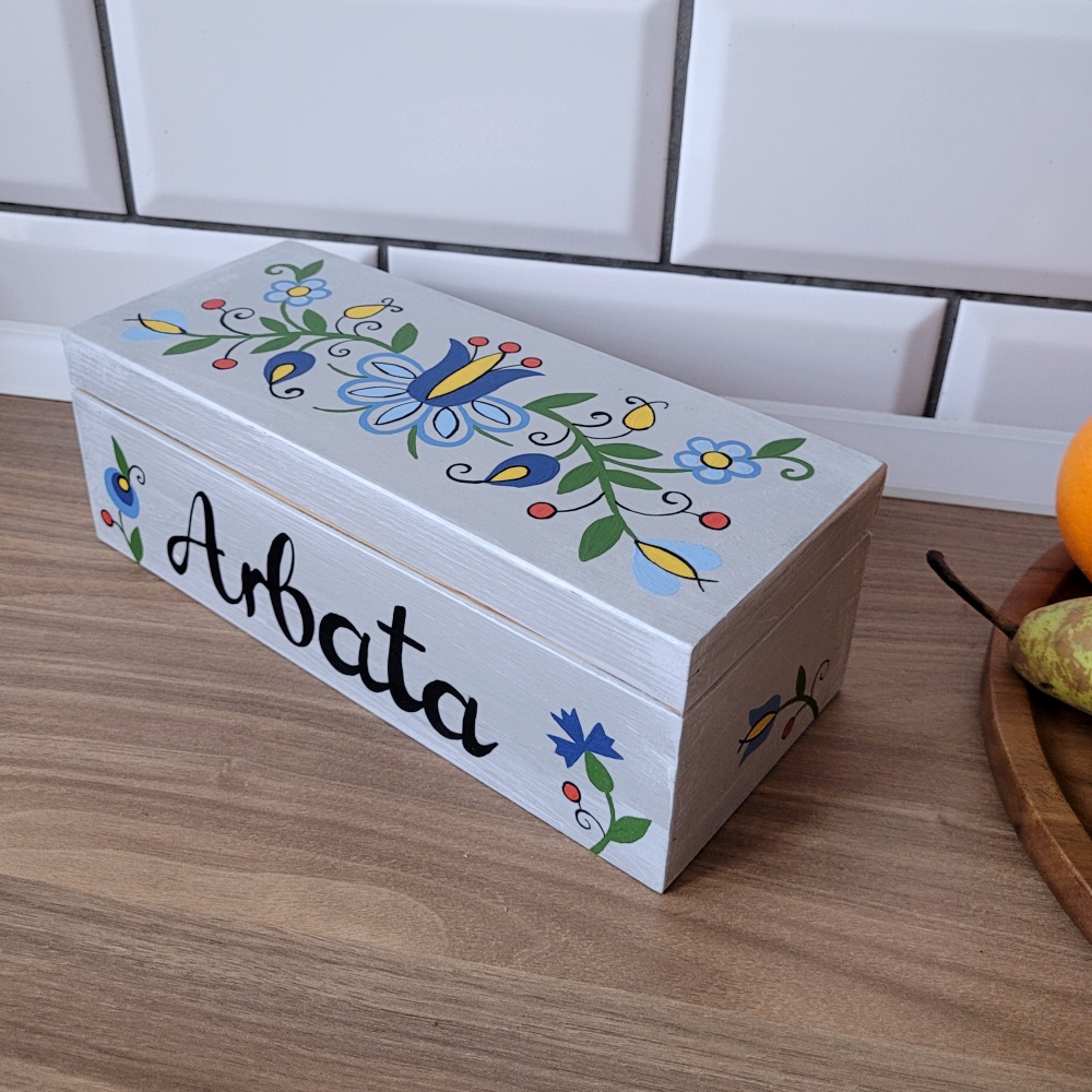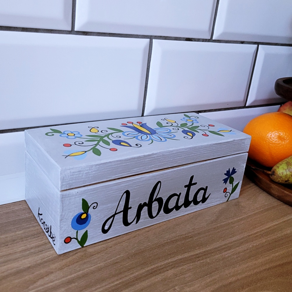 To praktyczny pojemnik na herbatę w torebkach, a zarazem piękna dekoracja kuchni lub jadalni. Idealnie sprawdzi się także jako regionalny, wyjątkowy prezent.
