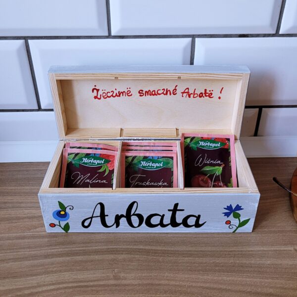 To praktyczny pojemnik na herbatę w torebkach, a zarazem piękna dekoracja kuchni lub jadalni. Idealnie sprawdzi się także jako regionalny, wyjątkowy prezent.