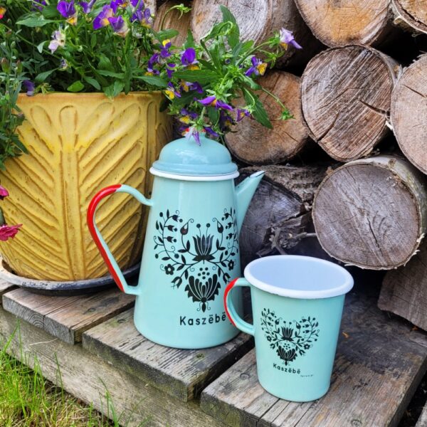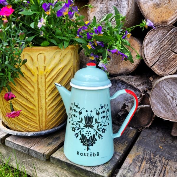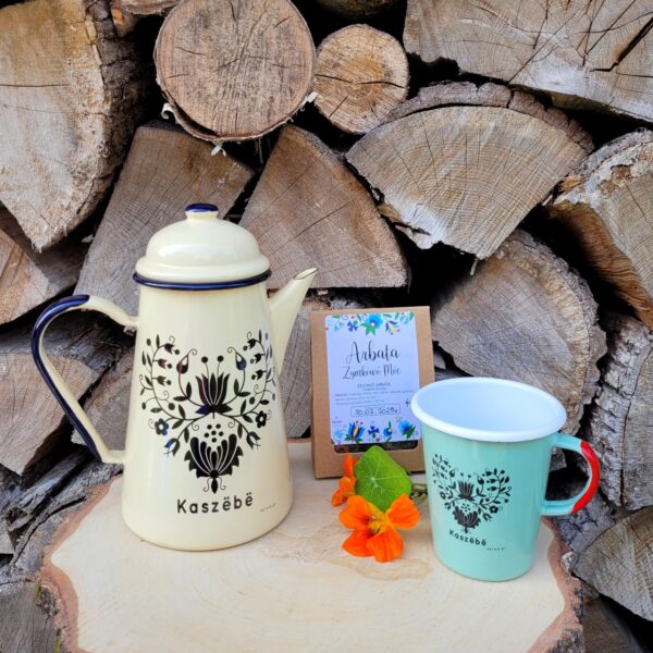 Kafejnik emaliowany „Serce” Kaszëbë – poj. 1,3 l – groszkowy