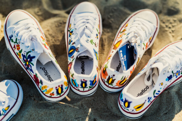 Ręcznie zdobione obuwie przypadnie do gustu osobom poszukującym nie tylko estetyki, ale także wartości – każda para powstaje w ograniczonej liczbie egzemplarzy, co podkreśla jej wyjątkowość. Trampki te można łączyć zarówno z ubraniami w stylu folkowym, jak i minimalistycznymi, stonowanymi zestawieniami, gdzie stają się głównym akcentem stroju.
