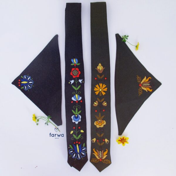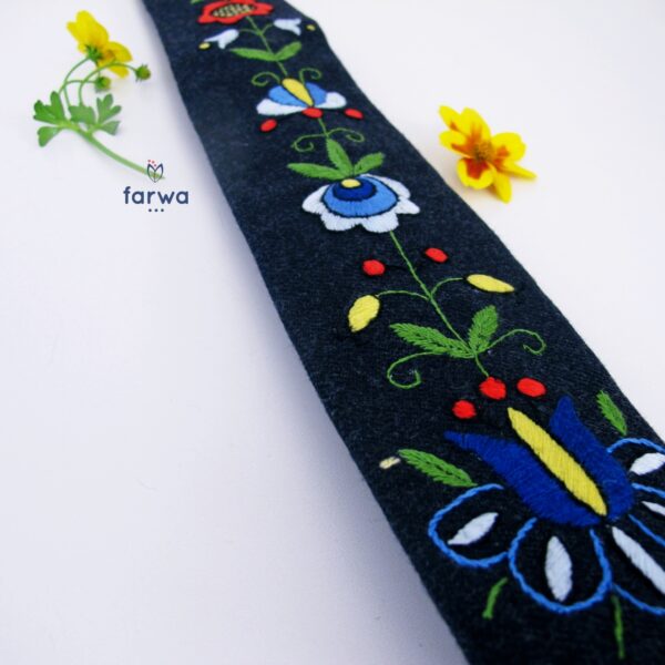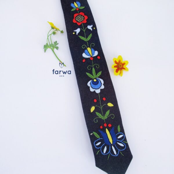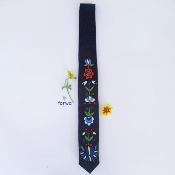 Krawat lniany z ręcznie wyszytym haftem kaszubskim. Wykonany z polskiego lnu najwyższej jakości.