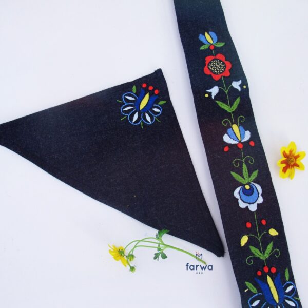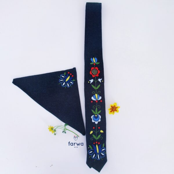Poszetka również granatowa z ręcznym haftem kaszubskim