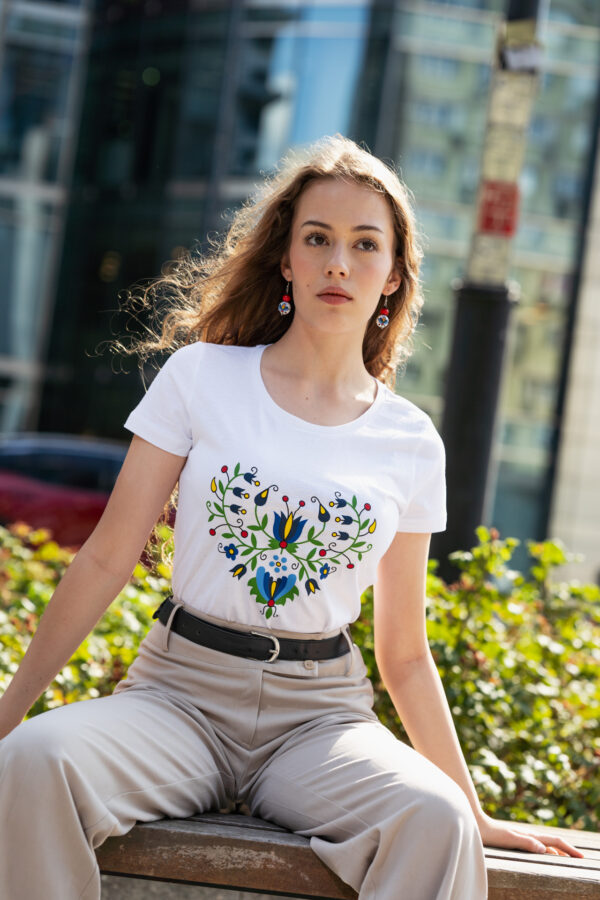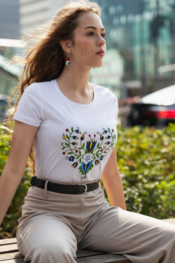 Koszulka doskonale odnajdzie się w szafie osób poszukujących oryginalnych ubrań z historią, które jednocześnie nie rezygnują z wygody. Ludowy wzór serca nawiązuje do polskiego dziedzictwa kulturowego – będzie ciekawym wyborem zarówno dla miłośniczek tradycji, jak i zwolenniczek nowoczesnych rozwiązań.