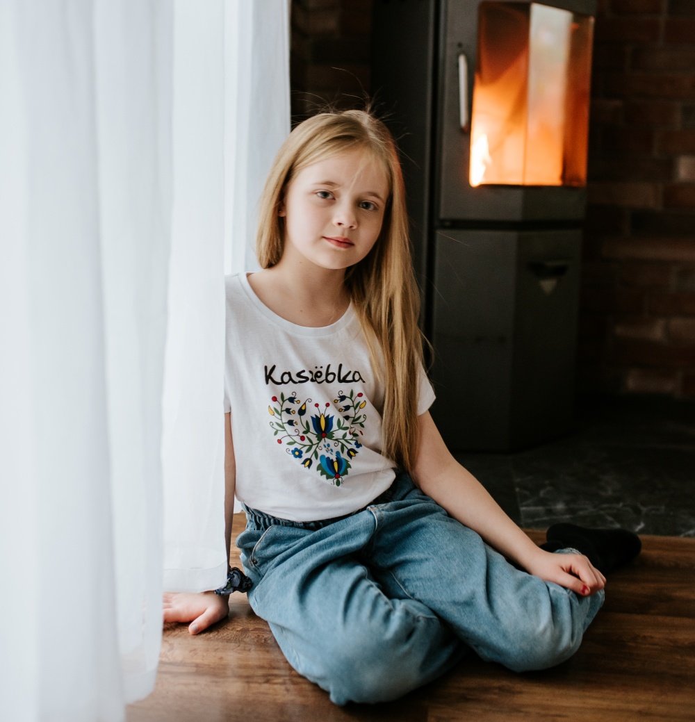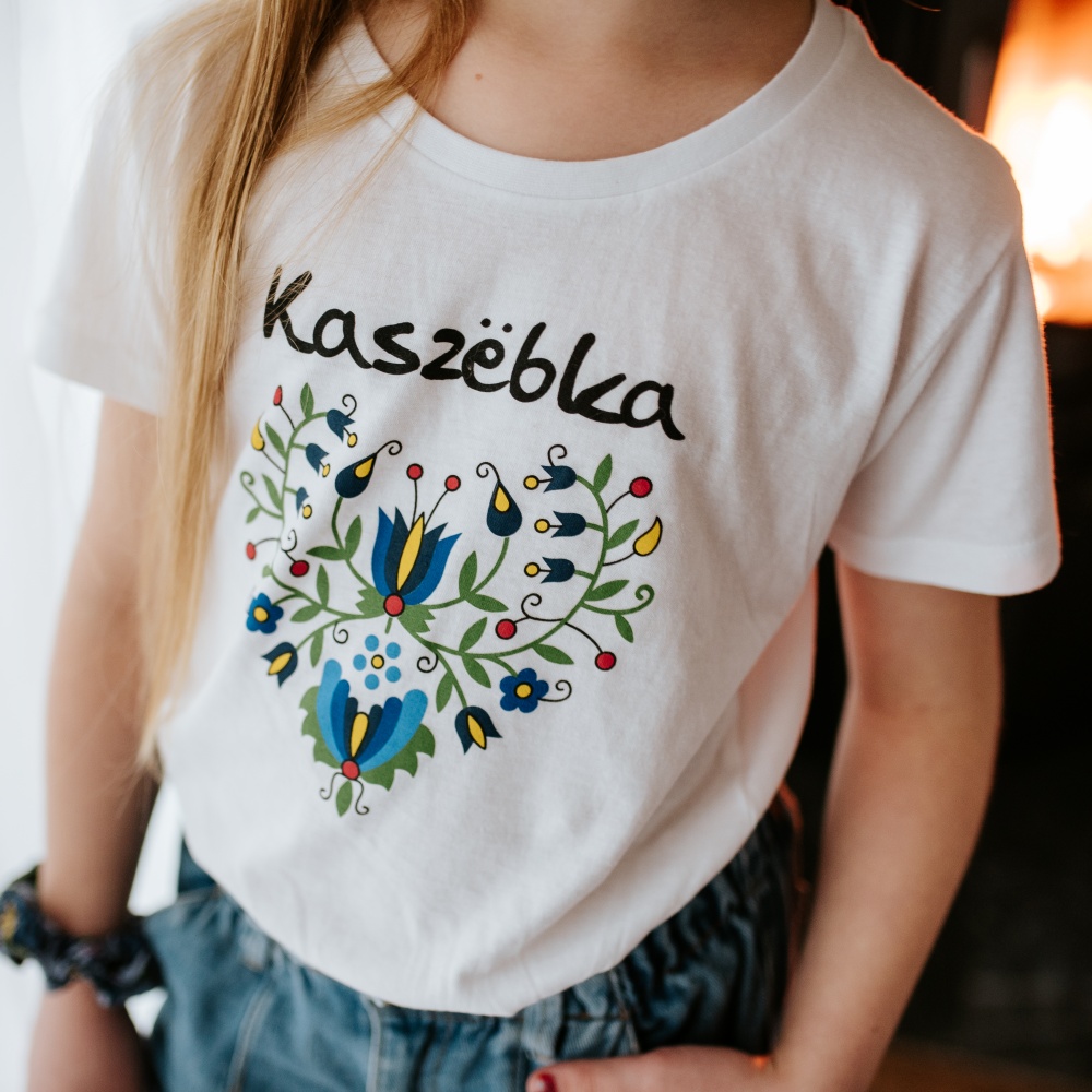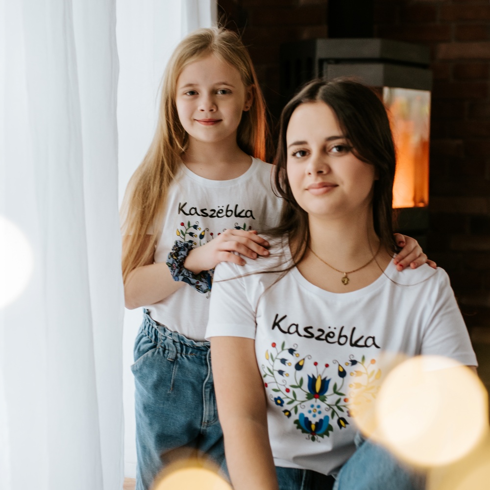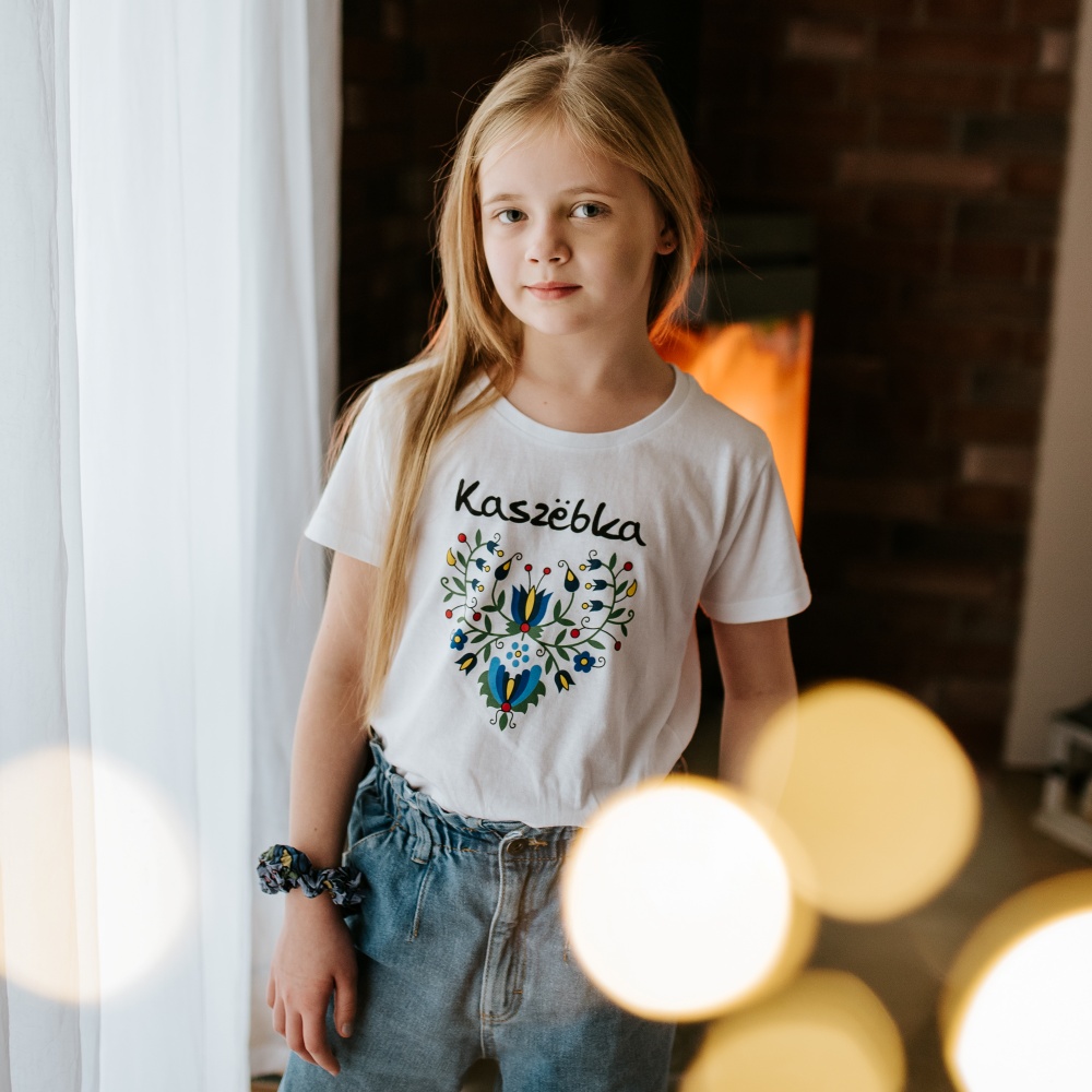 Koszulka „Kaszëbka” – motyw serca kaszubskiego (dla dziewczynki i dorosłych)