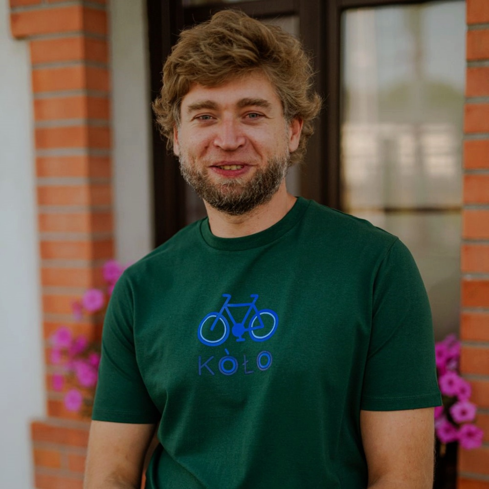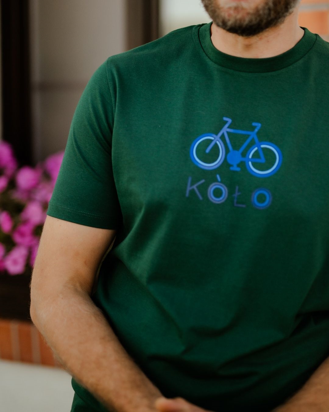 - Koszulka z napisem w języku kaszubskim „Kòło” – Rower i grafiką roweru, wszystko zawarte w 3 kolorach mòdrégò ( niebieskieg