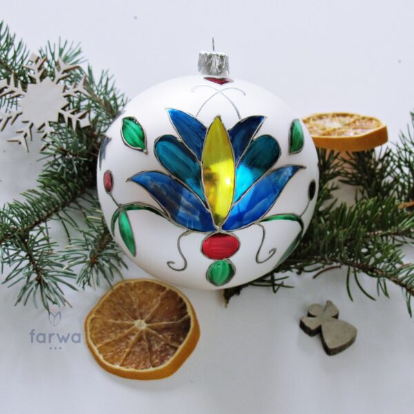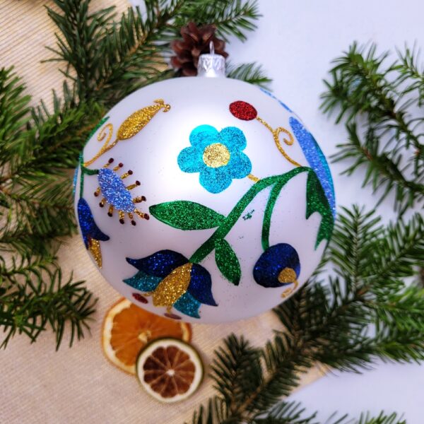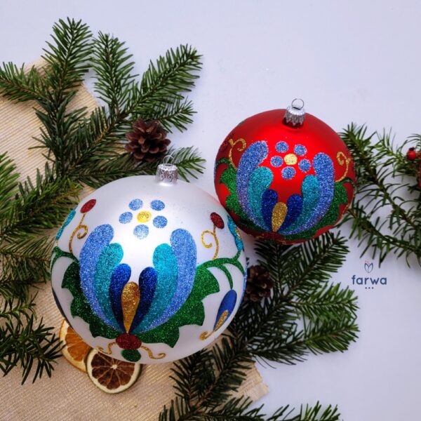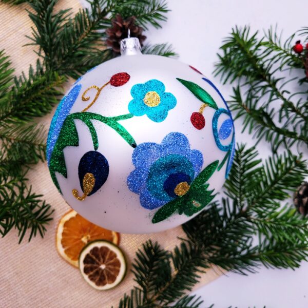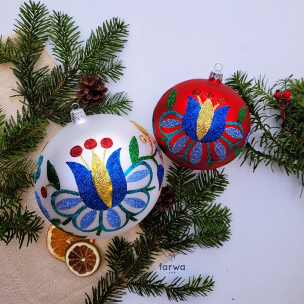 Każda bombka, każdy zdobiący ją motyw został wykonany ręcznie, dzięki czemu nie tylko osiągnęliśmy ich niepowtarzalny charakter, ale zgodnie z przyświecający nam celem – kontynuujemy tradycyjną sztukę polskiego rękodzieła..