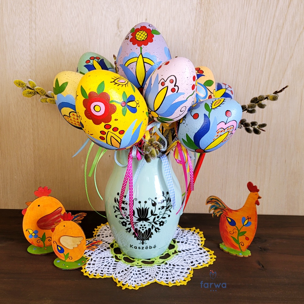 To idealna dekoracja wielkanocna – doskonale sprawdzi się na stole, komodzie, parapecie lub jako element świątecznego stroika.