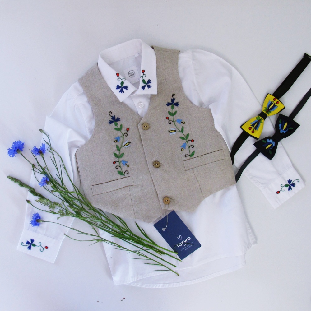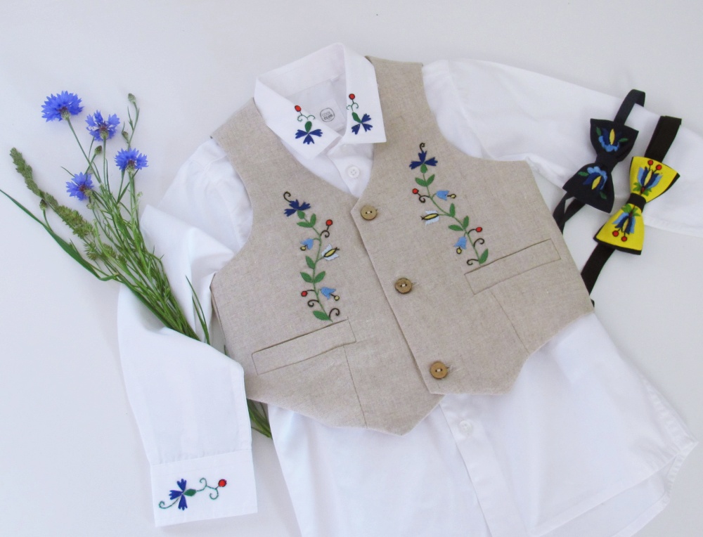 Liwk / Kamizelka chłopięca haft kaszubski- 100% Len