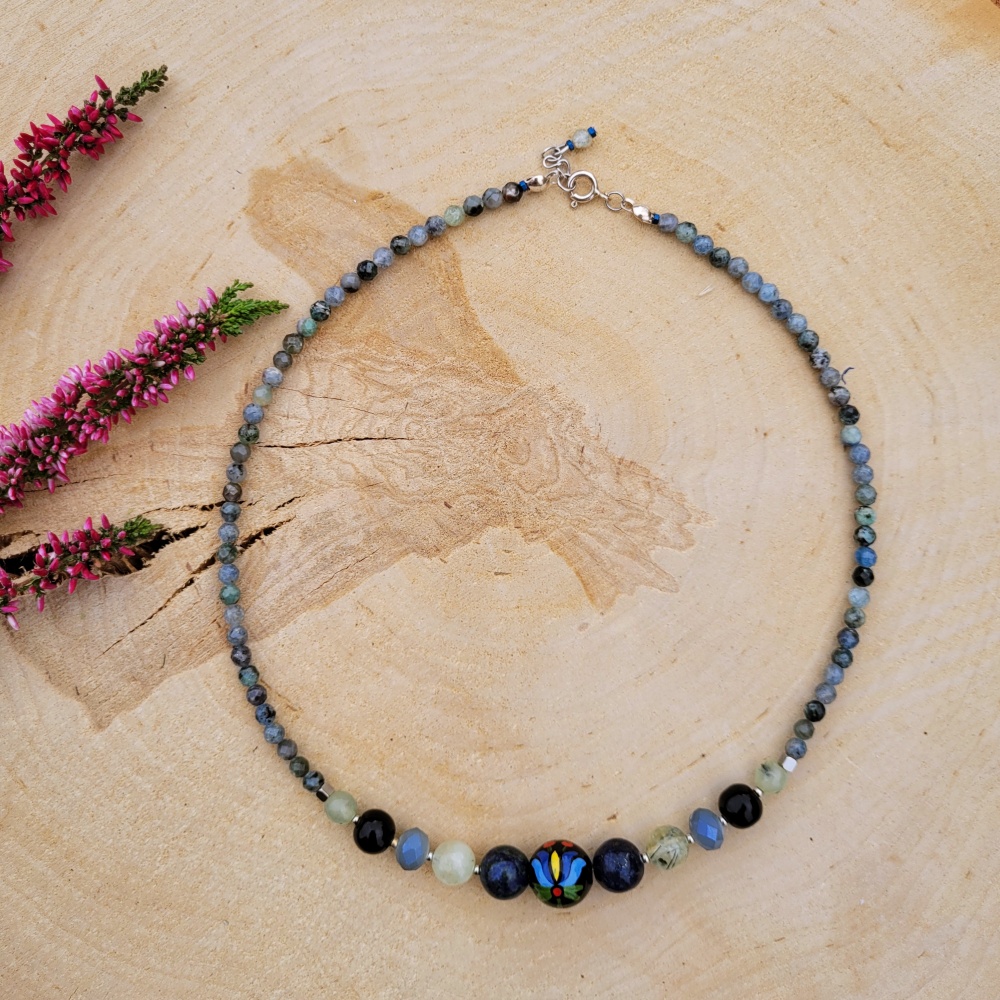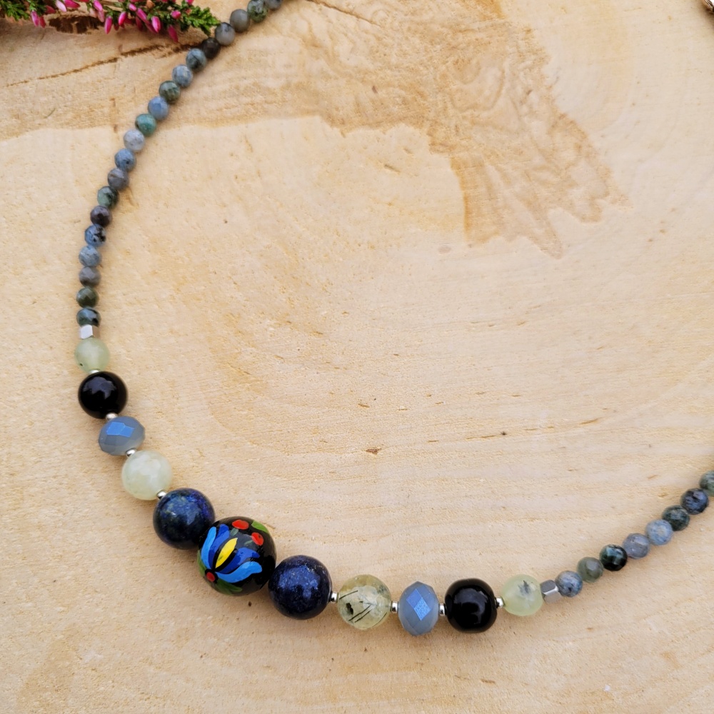 Naszyjnik z kamieniami naturalnymi „Kruk”