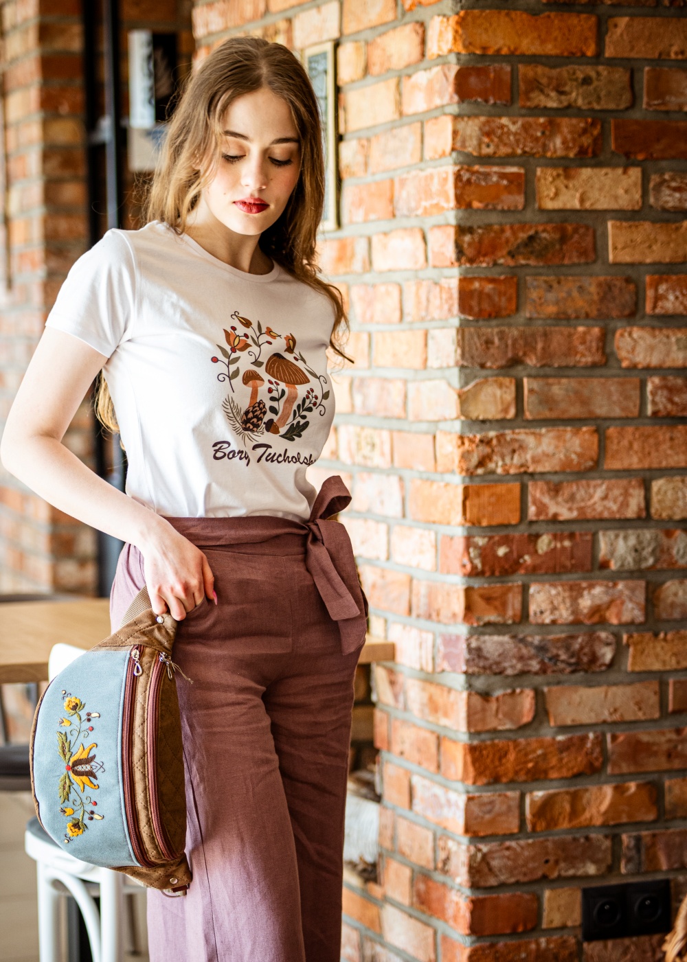 Przód zdobi efektowny wzór kaszubski, który przyciąga wzrok i dodaje charakteru każdej stylizacji.