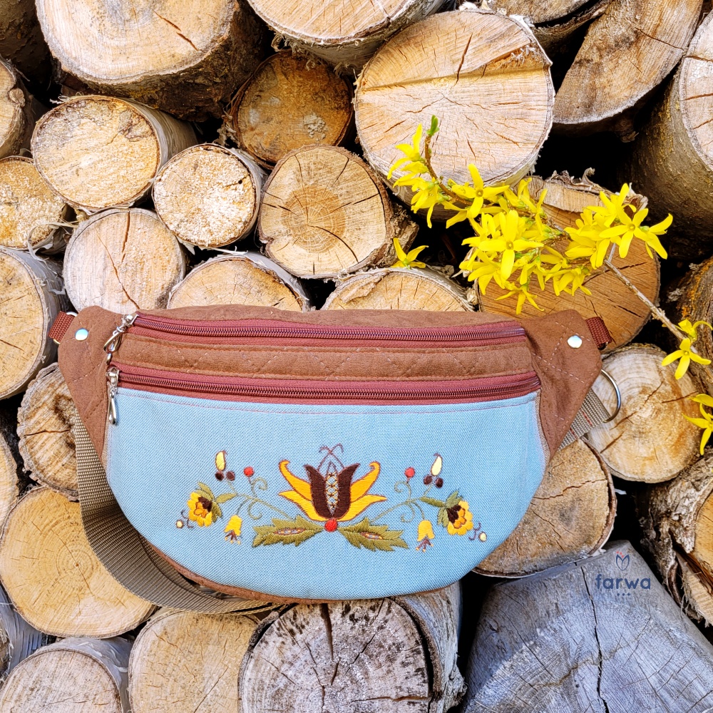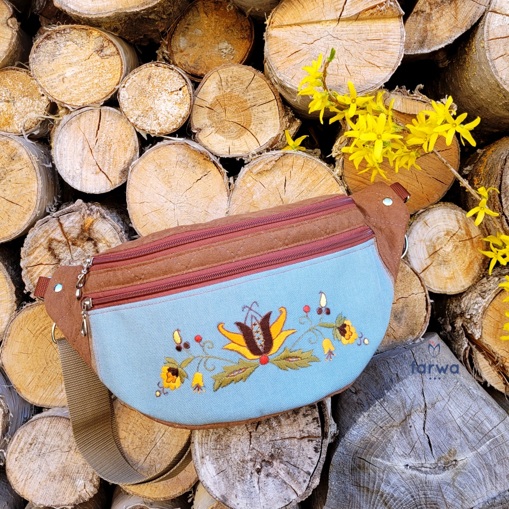 Nerka XL – ręcznie robiona, wodoodporna, z wyjątkowym wzorem kaszubskim haftowanym ręcznie i ozdobnym paskiem