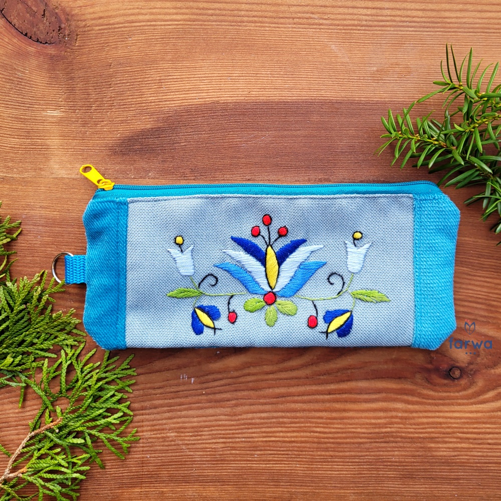 Haft wykonany ręcznie – pięknie zdobi cały organizer.