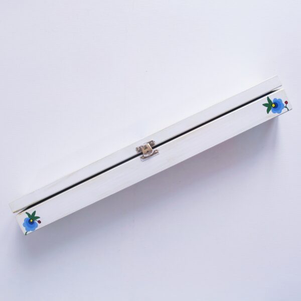 Haft szkoły żukowskiej. Pudełko białe delikatnie złocone.