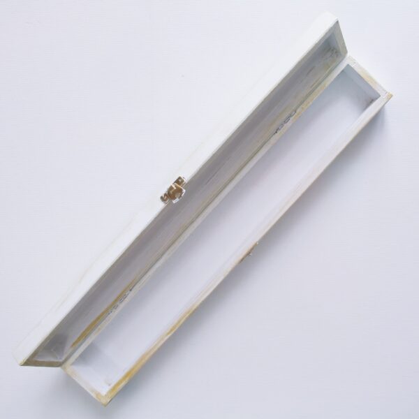 Drewniane bardzo efektowne prostokątne pudełko na gromnice lub świecę, góra i spód wykonane ze sklejki.