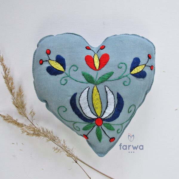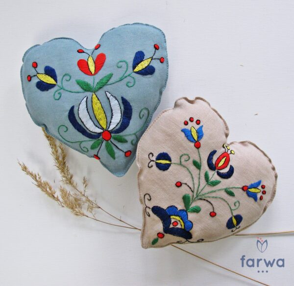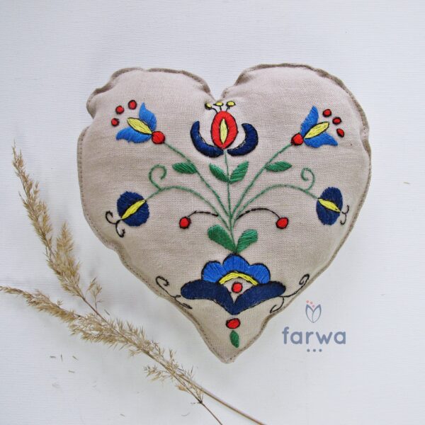 Poduszka - serce. Haft ręczny  z oryginalnym wzorem Kaszubskim – haft wejherowski z teczki Anny Konkel.