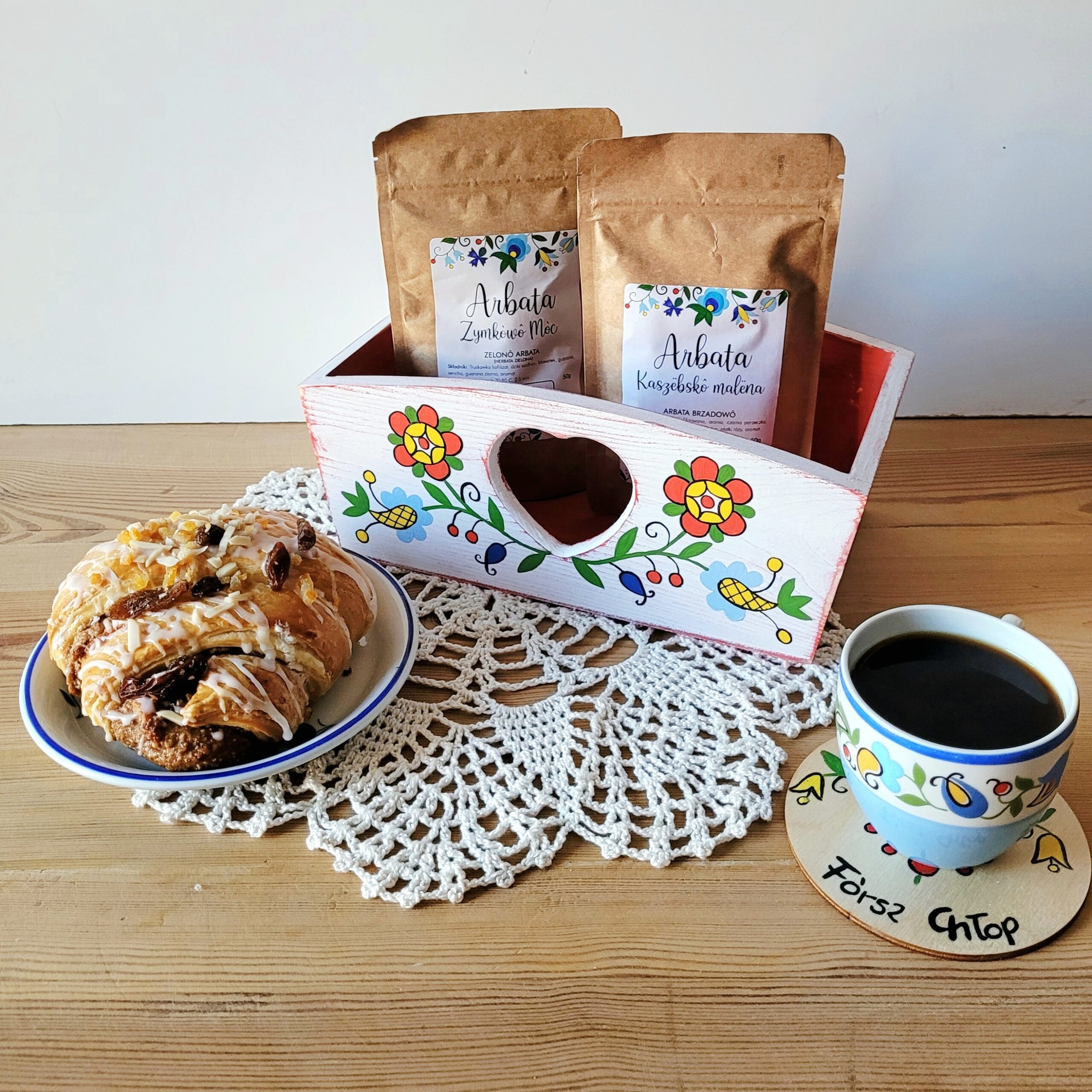 Skrzyneczka wdzydzka z sercami – haft wejherowski