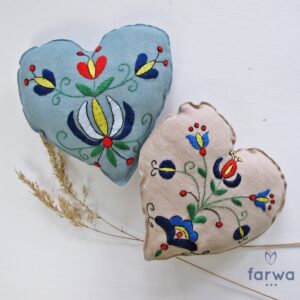 Ręcznie malowana skrzynka kaszubska w białej odsłonie to nie tylko praktyczny przedmiot, lecz także wyjątkowy element dekoracyjny o bogatej symbolice kulturowej. Drewno wykończone delikatnym efektem postarzenia, ozdobione autentycznymi motywami haftu żukowskiego, doskonale współgra zarówno z oszczędnymi, jak i bardziej zdobionymi aranżacjami.