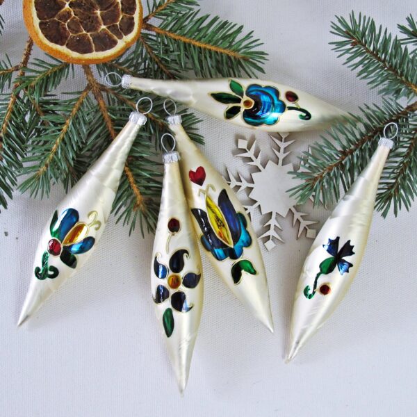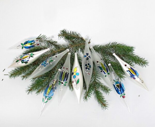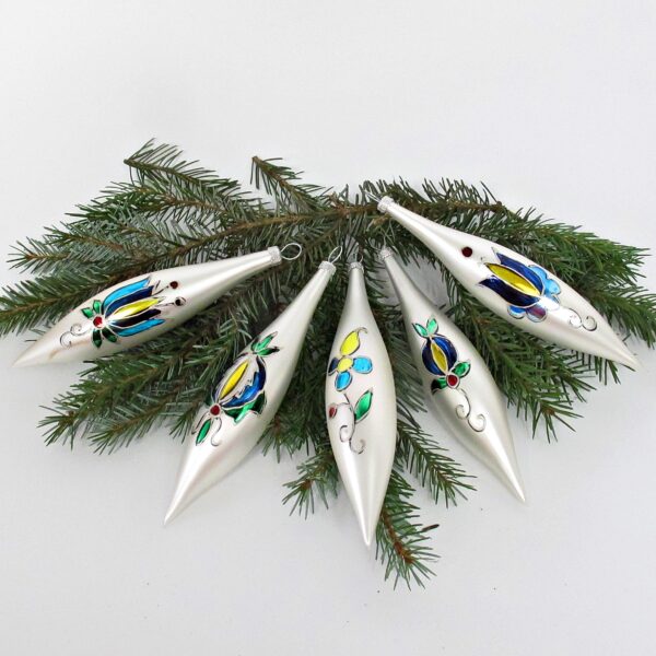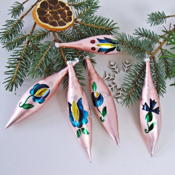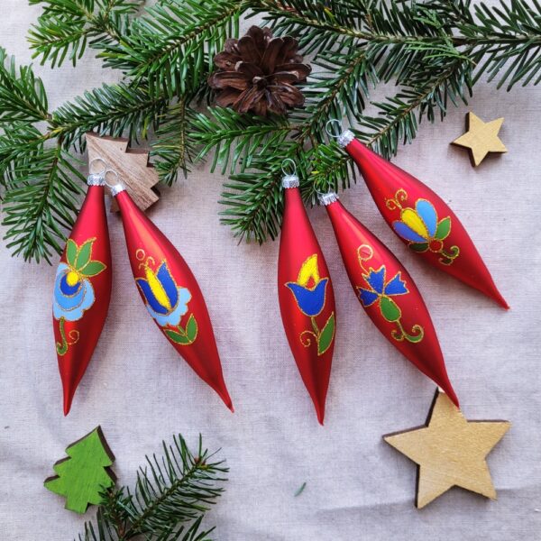 Ręcznie zdobione bombki – sople (zestaw 5 szt.)
