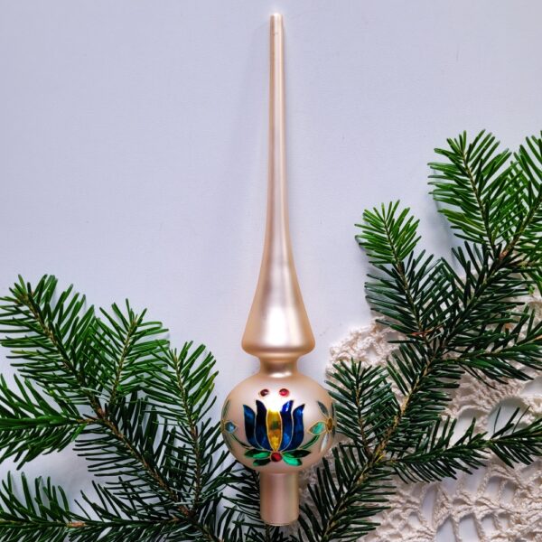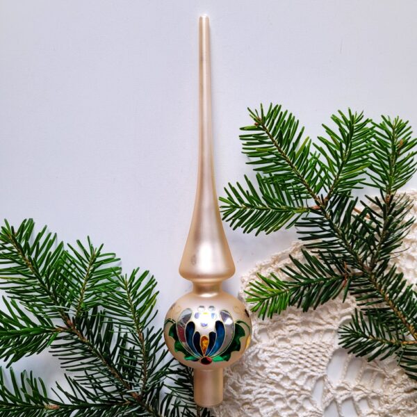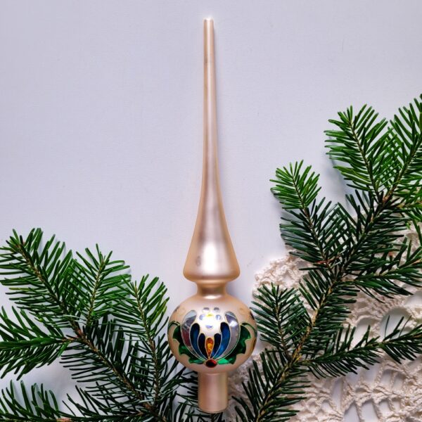 Odkryj wyjątkowy szklany szpic na choinkę o wysokości 26 cm.