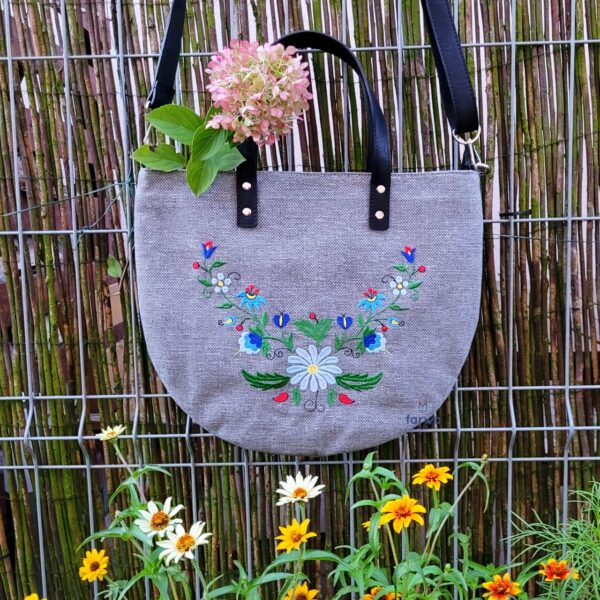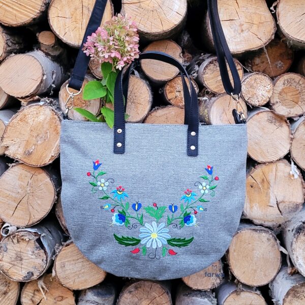 Jej piękny wzór i wyraziste kolory nawiązują do tradycji i dziedzictwa Kaszub. Nie tylko jest stylowa, ale także praktyczna - idealna na letnie spacery czy wieczorne wyjścia