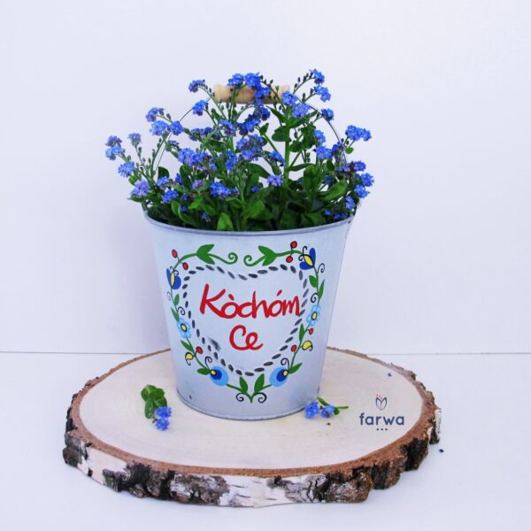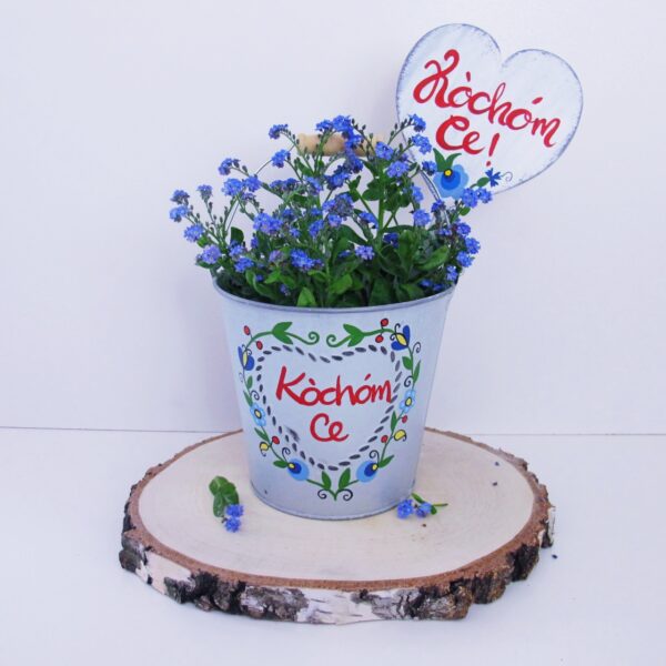 Przebywanie w otoczeniu kwiatów i zieleni wprowadza w pozytywny nastrój. Rośliny będą prezentować się jeszcze lepiej, kiedy sprawisz im efektowną doniczkę z sercem i wzorami kaszubskimi oraz napisem "Kòchóm Ce" - Kocham Cię.