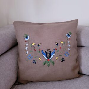 Malowany farbami akrylowymi – turkusowy – postarzany, haft malowany ręcznie – haft szkoły wdzydzkiej .